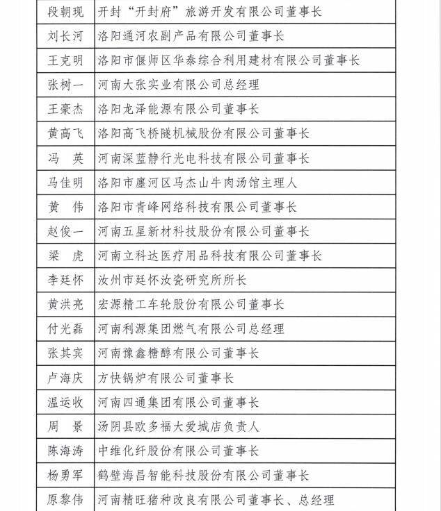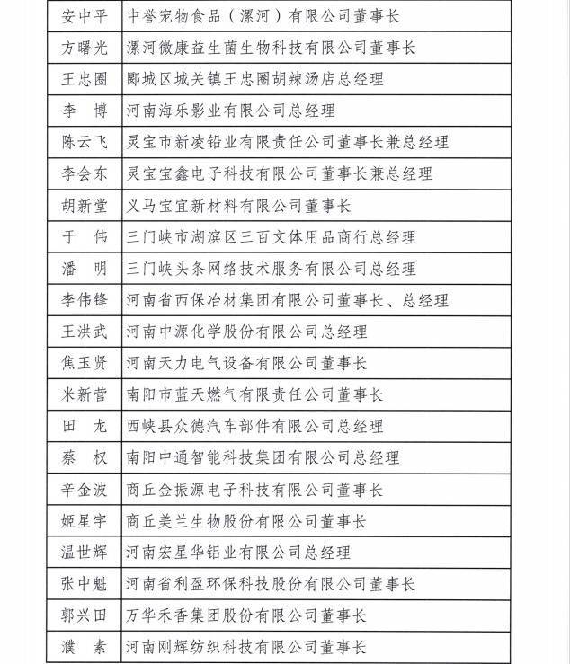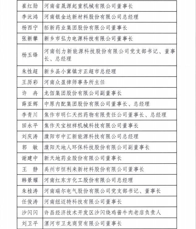 致欧科技董事长兼总经理宋川、众诚科技总经理梁友、大张实业总经理张树一、新天地药业董事长谢建中、卫龙商贸董事长刘卫平等在列。